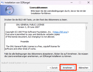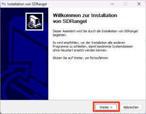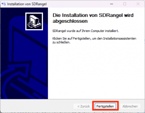 Auf Ihrem PC navigieren Sie im Datei-Explorer in das Verzeichnis, in dem Sie SDR-Angel heruntergeladen haben. Durch Doppelklick auf die .exe Datei startet der Installationsprozess. ;it dem folgenden Hinweis: