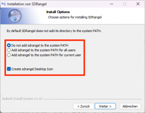 Im folgenden erhalten Sie nun die Auswahlmöglichkeiten, ob SDR-Angel