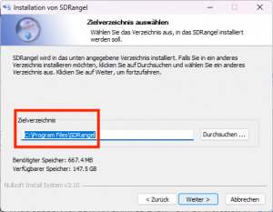 Jetzt erfolgt die Abfrage nach dem Zielverzeichnis, in dem die Software installiert werden soll.