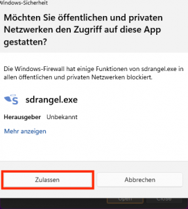 Nun können Sie SDRangel das erste Mal starten. Je nach den Sicherheitseinstellungen Ihres PC’s kann es möglich sein, das ein Warnhinweis angezeigt wird. Diesen Prüfen Sie bitte und wenn es passt, lassen Sie den Start von sdrangel zu.